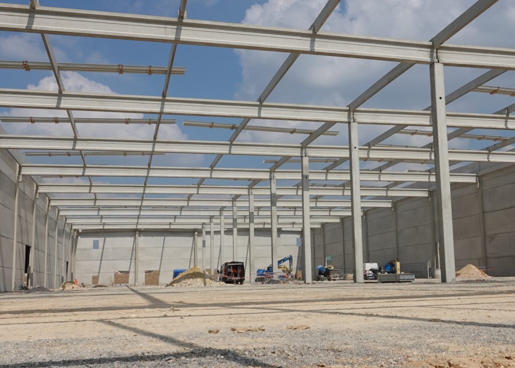 Nous travaillons également à la construction de la voirie, des réseaux, quais PL et à la préparation du sol pour le dallage intérieur.